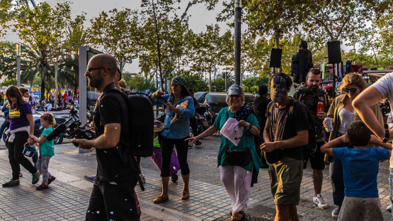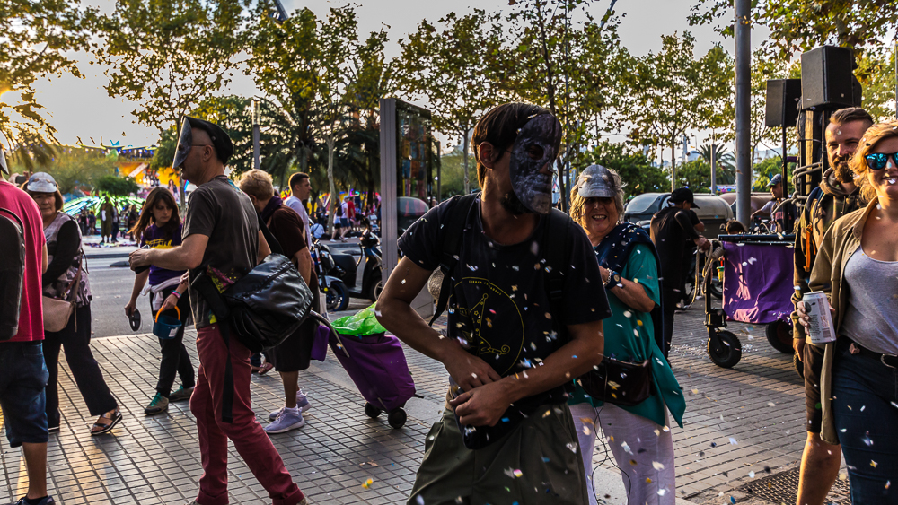 En descendant du téléphérique, le quartier de Barceloneta prend des allures de plages Californiennes… Des cortèges endiablés sillonnent les rues à l’occasion de la Festa Major, une fête de quartier qui a lieu entre fin septembre et début octobre.