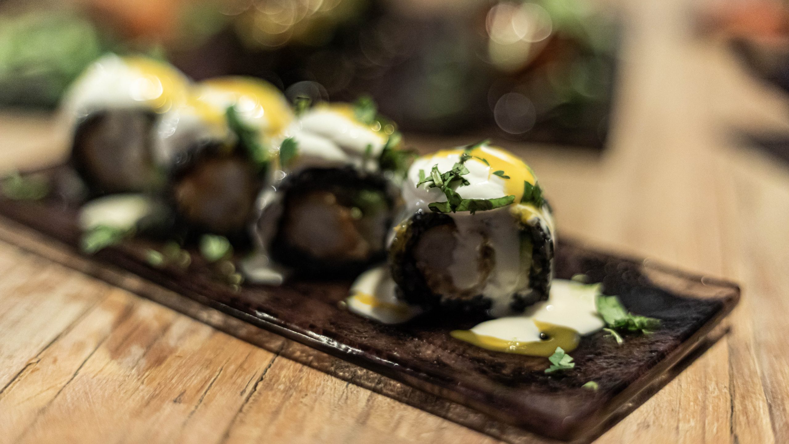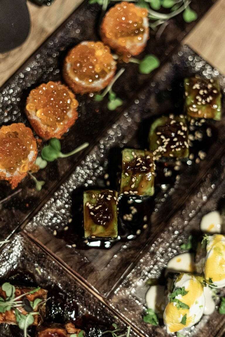 Ici, on est sur une cuisine fusion qui réinvente les sushis pour proposer des saveurs inédites. Riz noir & tempura de Langoustine, fruits de la passion, orange, ventrèche de saumon, crispy sushis : des assemblages insolites et savoureux ! On apprécie l’ambiance feutrée et la Playlist entraînante.
