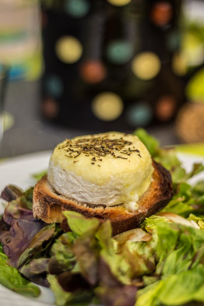 Les plats sont simples et copieux : salade de chèvre chaud, Aligot maison servi dans sa petite marmite et découpé selon la tradition (au ciseau), truite, tarte aux bleuets.