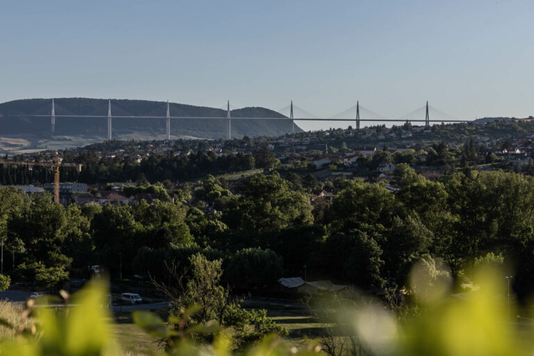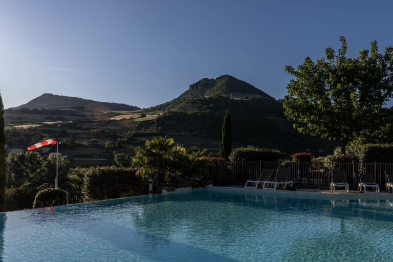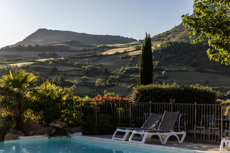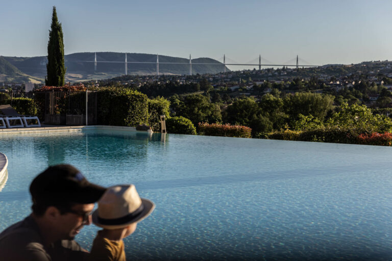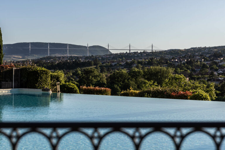 La piscine avec une vue imprenable sur le viaduc de Millau.