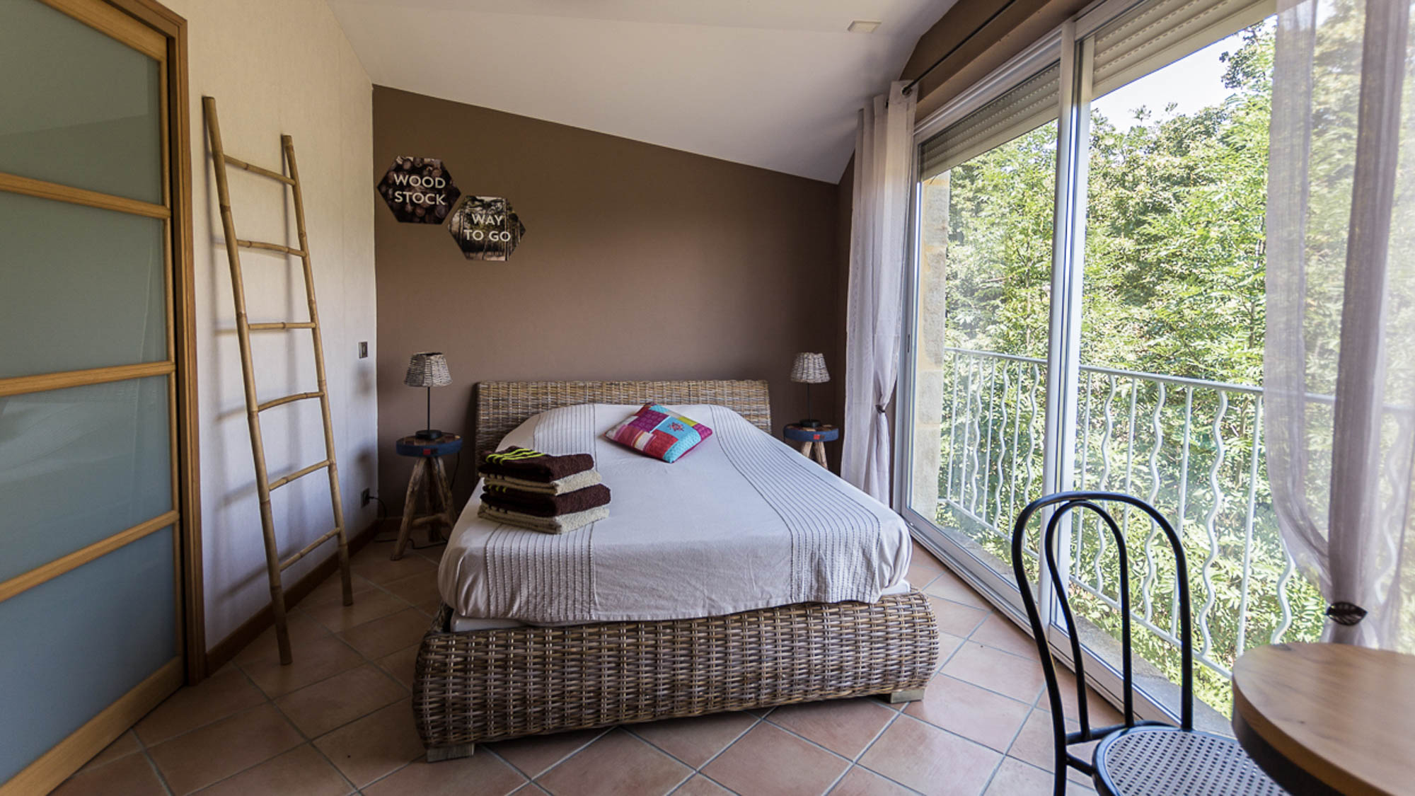 La chambre « Esprit Nature » avec son immense baie vitrée.