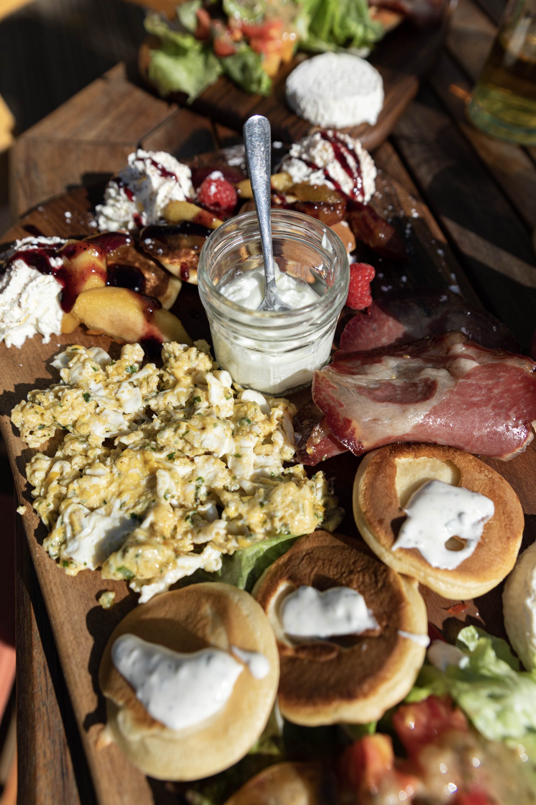 Le week-end, Coline & Mathieu proposent un délicieux brunch, où les pancakes salés & sucrés se partagent la vedette avec des fromages locaux et des nappages gourmands.
