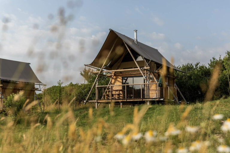 On y découvre donc des logements en toile et en bois uniques, dotés de vastes terrasses ouvertes sur la nature.