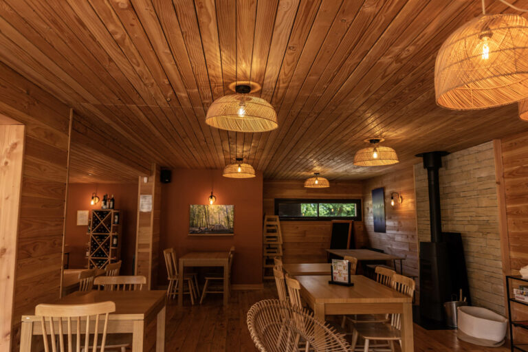 Par ailleurs, Huttopia propose un espace commun où l’on peut commander petits-déjeuners, des bières ou vins locaux et des choses à grignoter. Des jeux de société et de la documentation touristique sur la région y sont également disponibles.