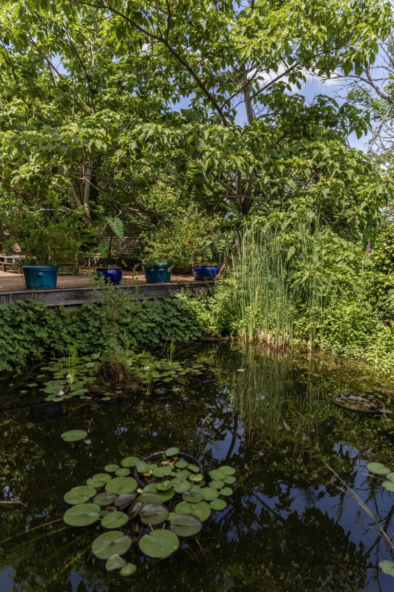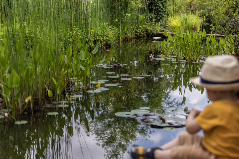 Au cours de la visite, on flâne dans plusieurs espaces aux ambiances différentes. Entre plantes exotiques, potager aux légumes oubliés, bassin fleuri de nénuphars, terrasse et hamacs qui invitent à faire une pause… Le Jardin des Paradis mêle subtilement art & nature : soyez attentifs aux petits détails qui se cachent un peu partout !