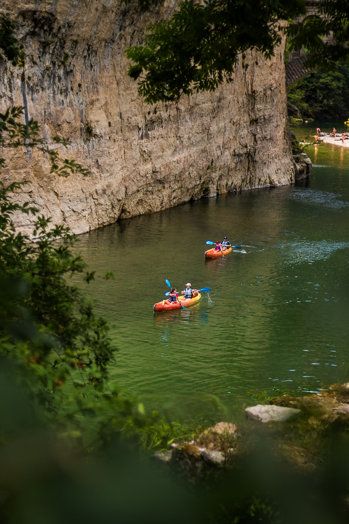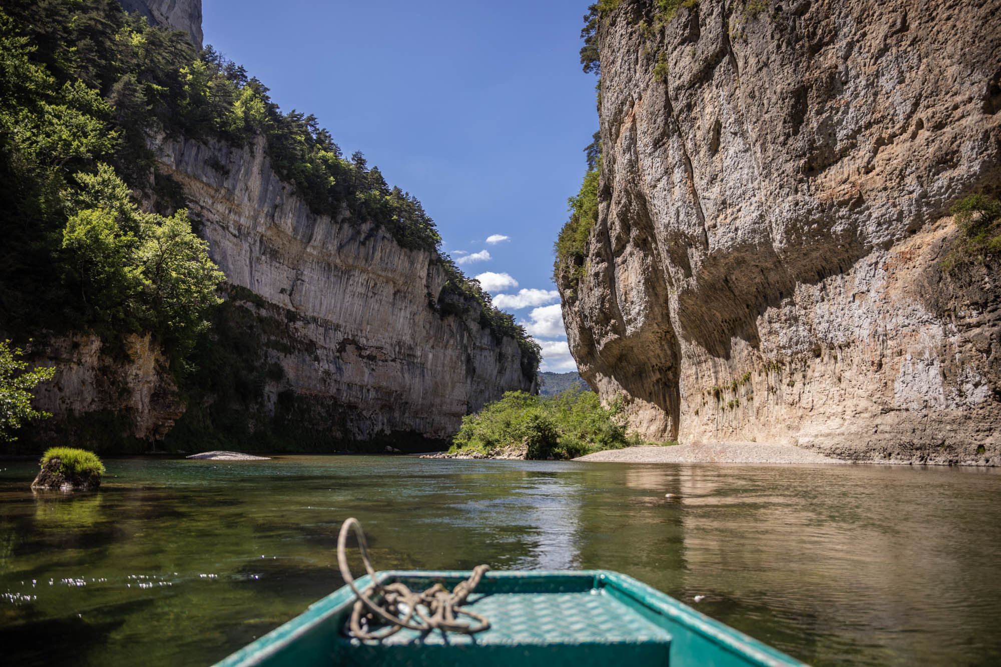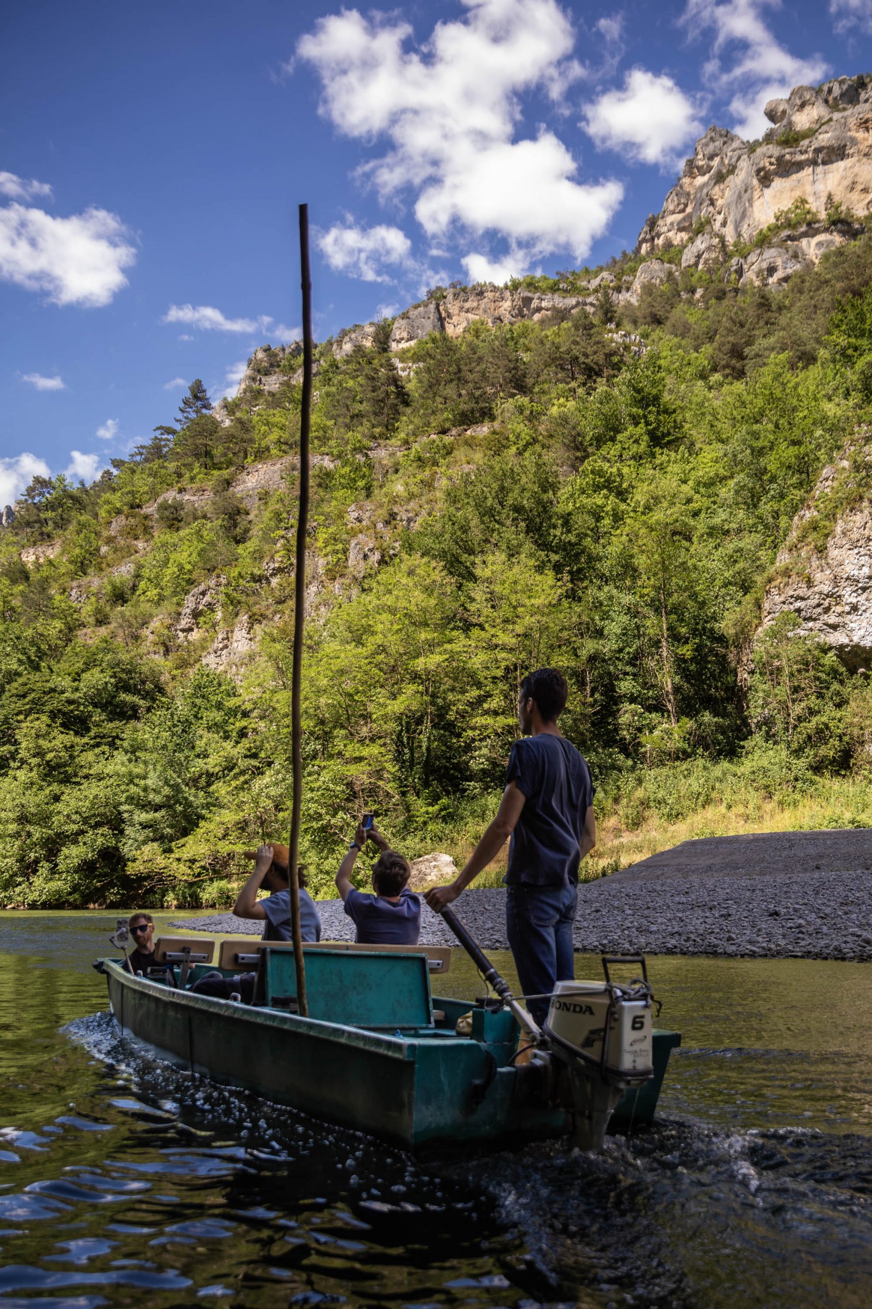 Avec un enfant en bas-âge, le canoë n’était pas possible mais nous avons trouvé une alternative tout aussi agréable : la barque. Ainsi, nous avons pu découvrir les Gorges au fil de l’eau, dans une barque à fond plat conduite par un batelier professionnel équipé d’une longue perche.
