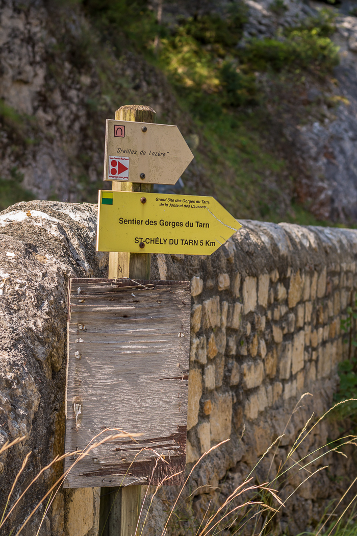 Ce sentier surplombe la rivière et offre de nombreux points de vue sur les Gorges du Tarn. Même en plein été, nous étions presque seuls sur ce chemin. Notez que les derniers mètres en descendant vers St Chély sont un peu escarpés, mais rien d’insurmontable (testé et validé avec un petit Louison dans son porte-bébé.)