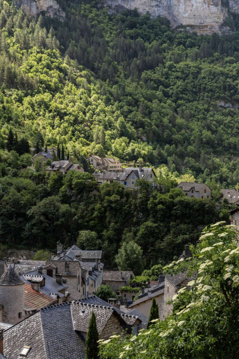 La visite du village est rythmée de rues pavées, de bâtisses médiévales, de maisons à colombages, de passages voûtés et de petites places pittoresques. Les vertigineuses falaises des Gorges du Tarn surplombent fièrement les entrelacs de toits d’ardoise du village.