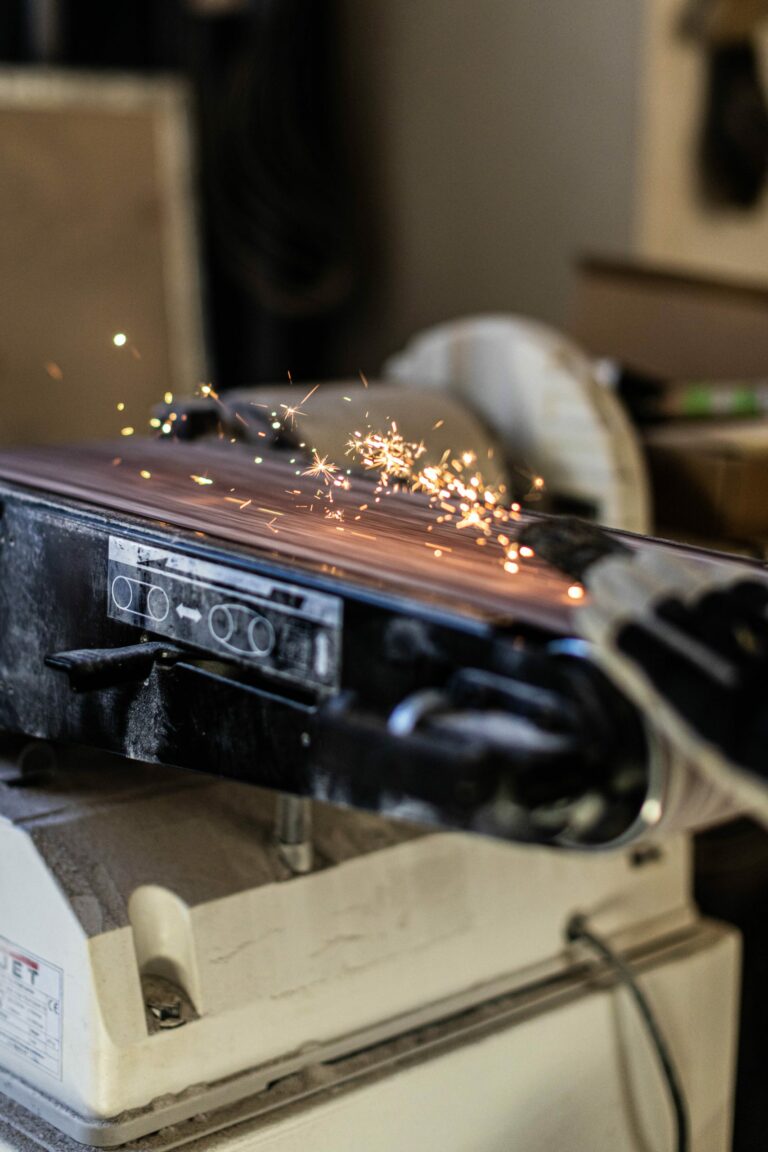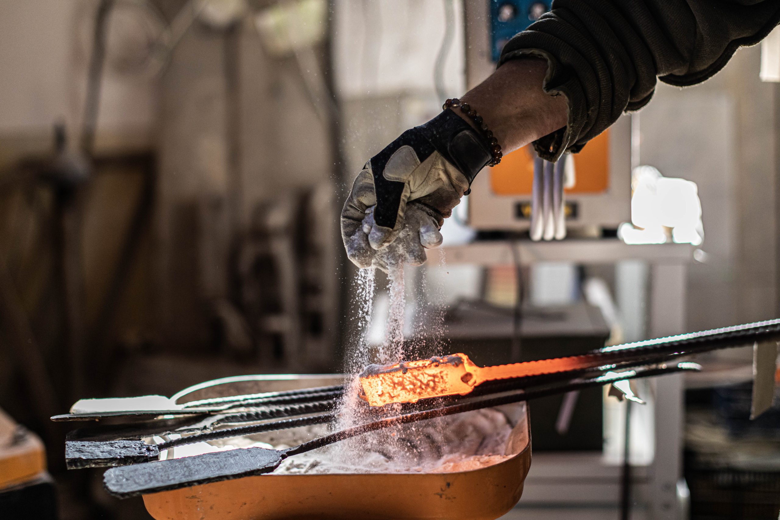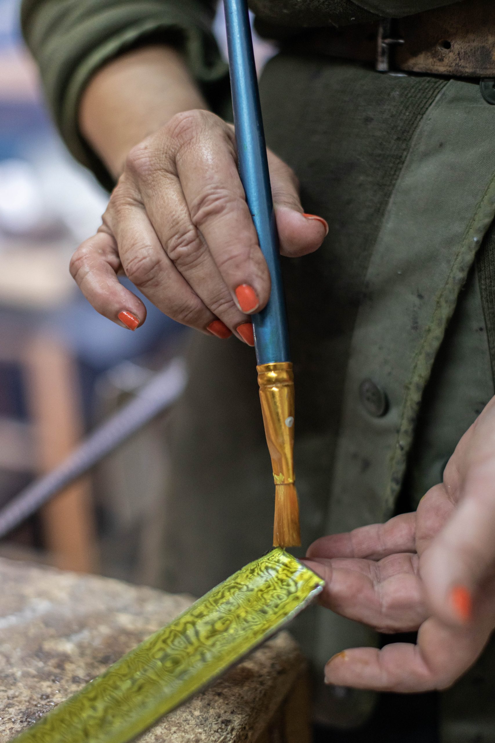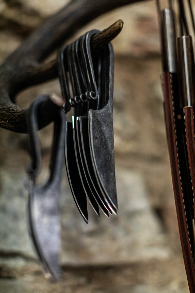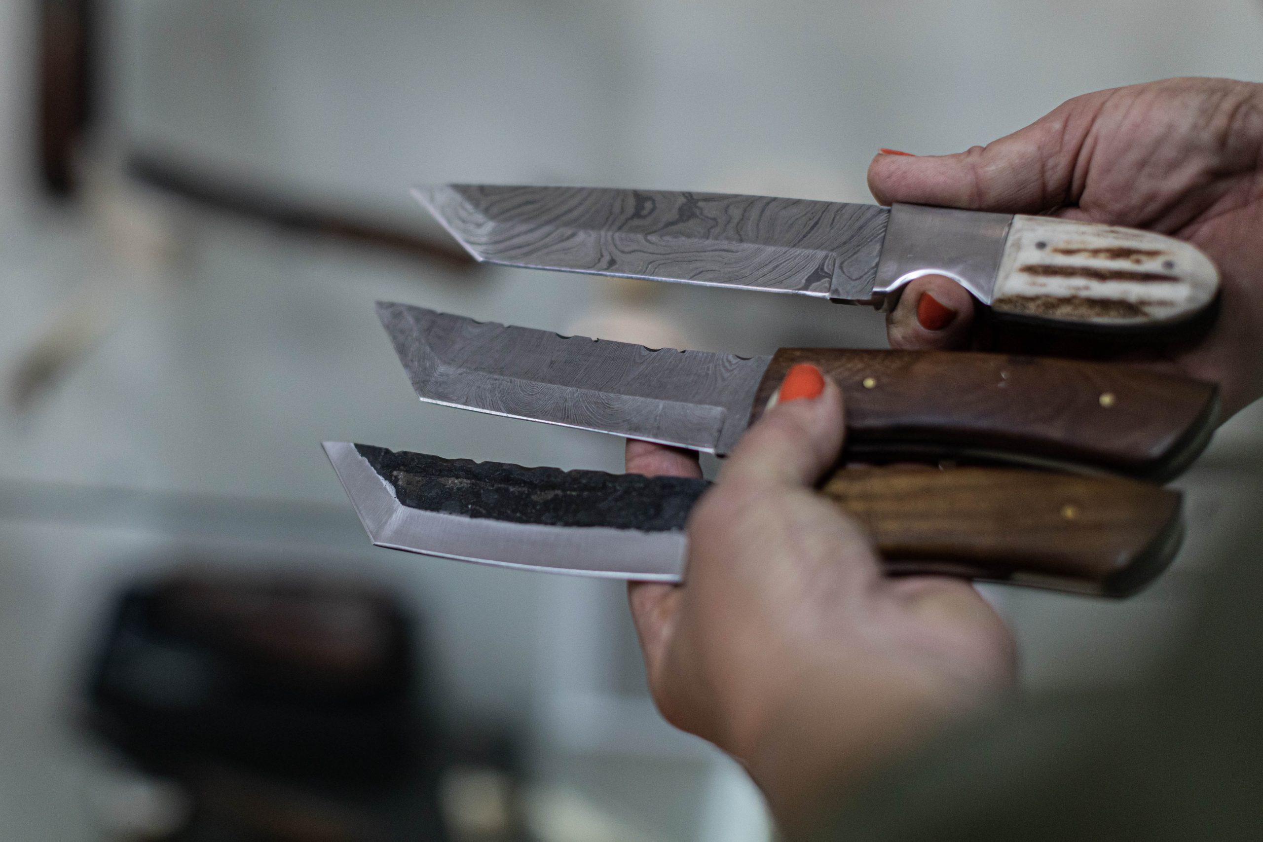 La coutellerie est un artisanat fascinant qu’elle maîtrise à la perfection. Elle manie tous ses outils avec dextérité pour créer des pièces uniques aux manches en bois de cerf sculptés.