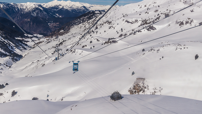 Le départ se fait d’Encamp, à 1333 mètres d’altitude. Le télécabine traverse la vallée des Cortals d’Encamp pour rejoindre la Collada d’Enradort à 2 506 m d’altitude. La traversée d’une vingtaine de minutes offre une vue imprenable sur les vallées et le domaine skiable.