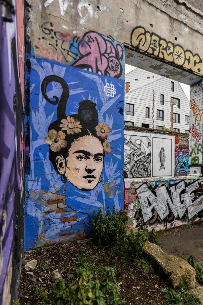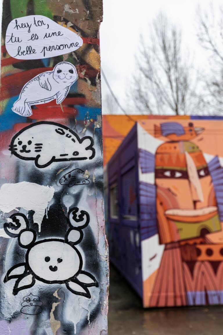 L’itinéraire est jalonné d’œuvres de street Art, notamment celles de l’artiste « Alber » qui peint des visages graphiques et colorés dans toute la ville.