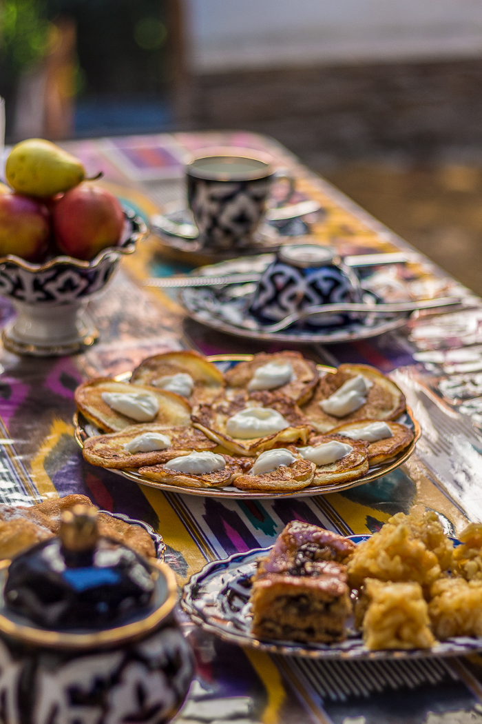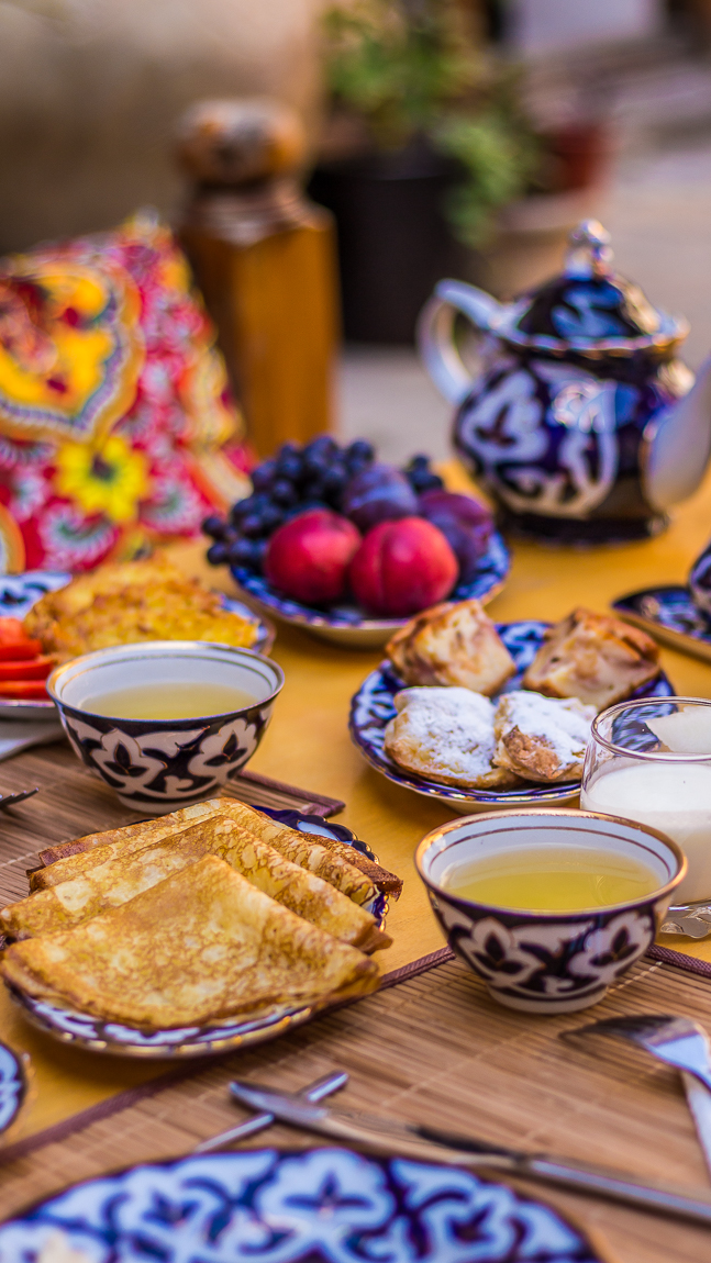 Si un jour vous vous rendez à Samarcande, je vous conseille de loger dans → cet hôtel ← (En plus, les petits déjeuners sont aussi délicieux que gargantuesques !)