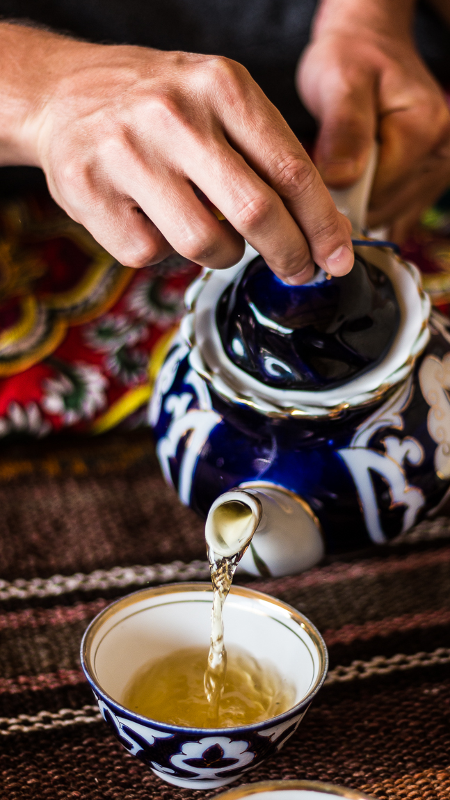 Le rituel du thé en Ouzbékistan : On en boit à chaque repas. C’est un symbole d’hospitalité en Asie centrale.