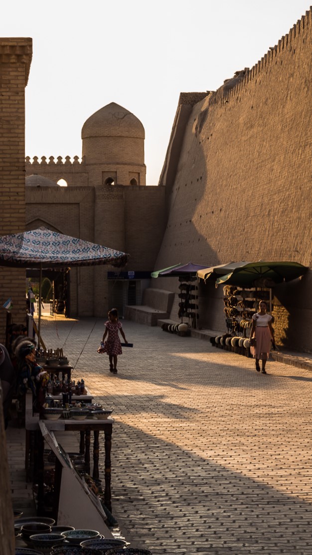 Nous avons arpenté Boukhara à l’aube, quand seuls les habitants s’affairaient dans les rues. À l’aurore, la lumière dorée du soleil sublimait la ville et les mosaïques semblaient se parer de reflets d’or et d’argent. C’est dans ces moments hors du temps que nous avons effleuré les mystères de la ville.