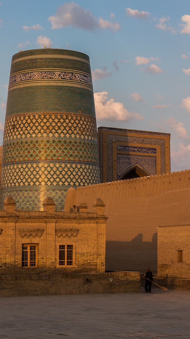 Venir à Khiva, c’est faire un voyage dans le passé, au temps des caravanes qui sillonnaient l’Asie centrale, chargées de soie et d’épices. La partie fortifiée de la ville, avec ses ruelles mystérieuses et ses innombrables mosquées, mausolées et minarets est un véritable musée à ciel ouvert, témoin de l’histoire de la route de la soie. D’ailleurs, le quartier d’Itchan Kala de Khiva fait partie du patrimoine mondial de l’UNESCO.