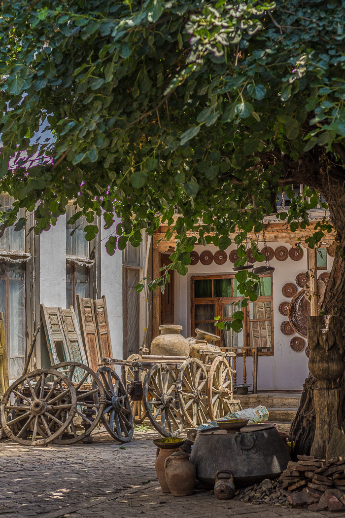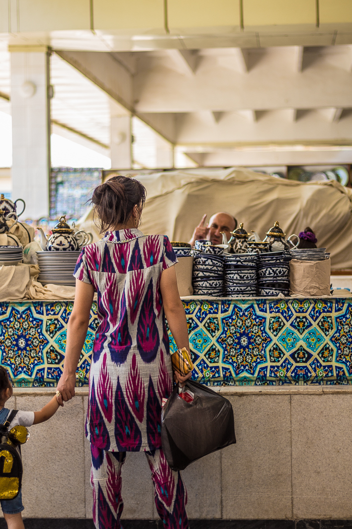 La vieille ville –piétonne- nous plonge dans une atmosphère particulière où le temps semble être suspendu. Partout dans les rues, on trouve des petits étals chargés d’artisanat ouzbèke et d’artefacts de l’ère soviétique. Il y a des canaux et des petits bassins autour desquels il fait bon flâner…