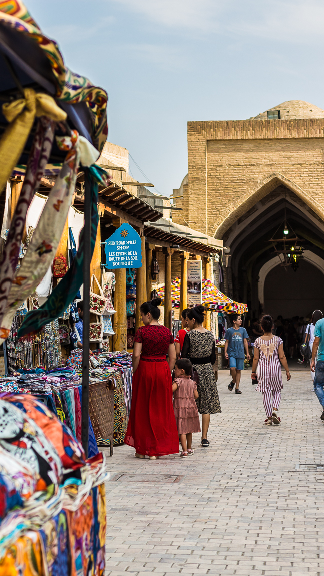 La place Liab-i-Hauz, avec son bassin à l’ombre des mûriers centenaires est particulièrement bucolique. La mosquée Kalyan, quant à elle, est l’une des plus belles que nous ayions visitées en Ouzbékistan.