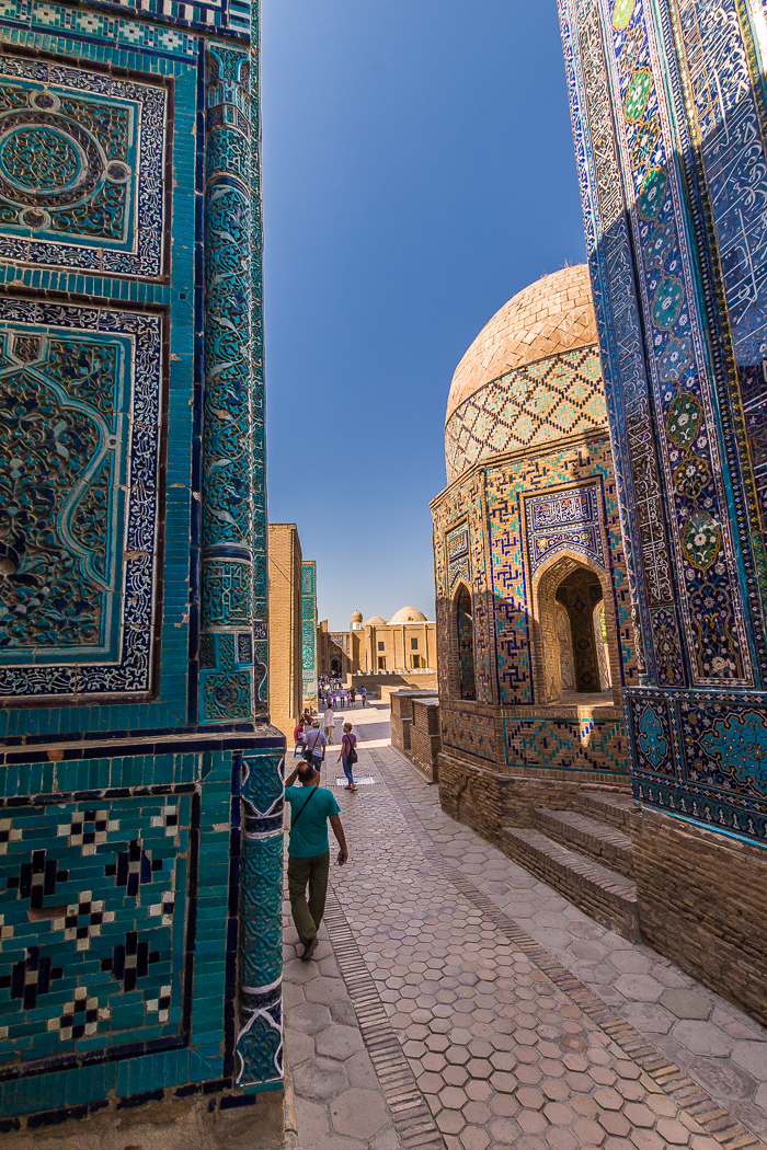 Malgré tout, un monument en particulier m’a profondément marquée. Il s’agit du mausolée « Chah-i-zinda » : un lieu incroyable, empreint de magie. Ici, j’ai trouvé un peu de la ville onirique que j’avais imaginée, avec ses coupoles turquoise et ses mosaïques sublimes.