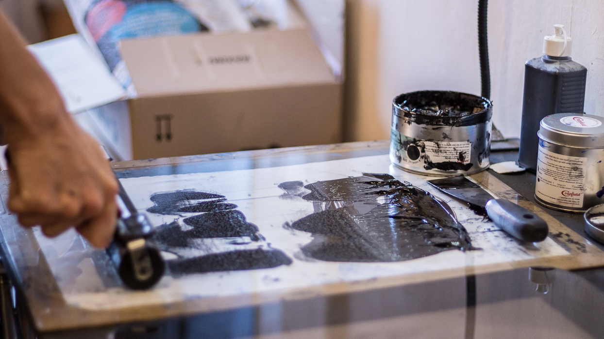 Pour l’impression, la plaque de linoleum est encrée à l’aide d’un rouleau enduit d’une fine couche d’encre. On vient ensuite plaquer le support final sur cette plaque, à l’aide d’une presse ou tout simplement à la main.