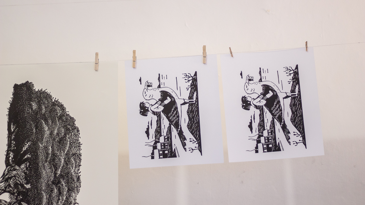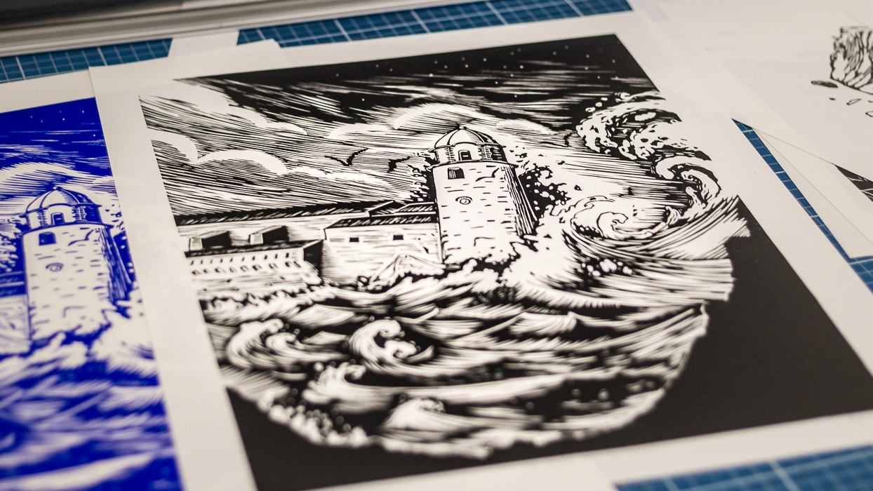 Ce qui m’a plu dans la linogravure, c’est ce côté « artisanal » avec ses différentes étapes bien distinctes. L’illustration laisse place à la gravure qui suppose patience et minutie. À l’inverse, la phase d’impression se caractérise par son instantanéité.