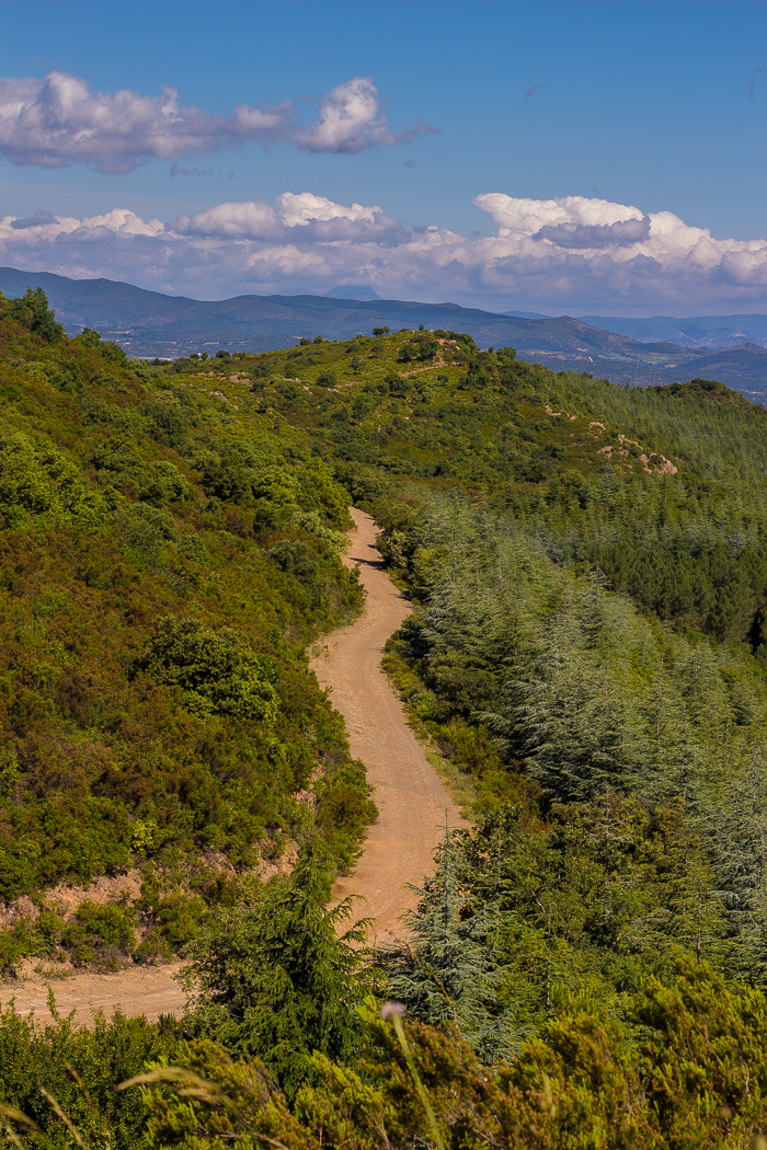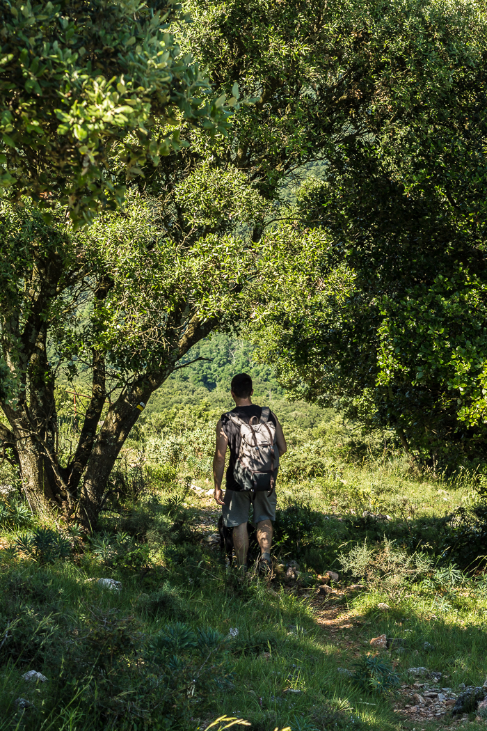 Ensuite, la balade continue et on suit un sentier forestier (à cet endroit, on a perdu le balisage mais on a retrouvé facilement le chemin car de toutes façons, il faut descendre !), puis une succession de pistes et de chemins en sous-bois, appréciables lorsqu’il fait chaud.