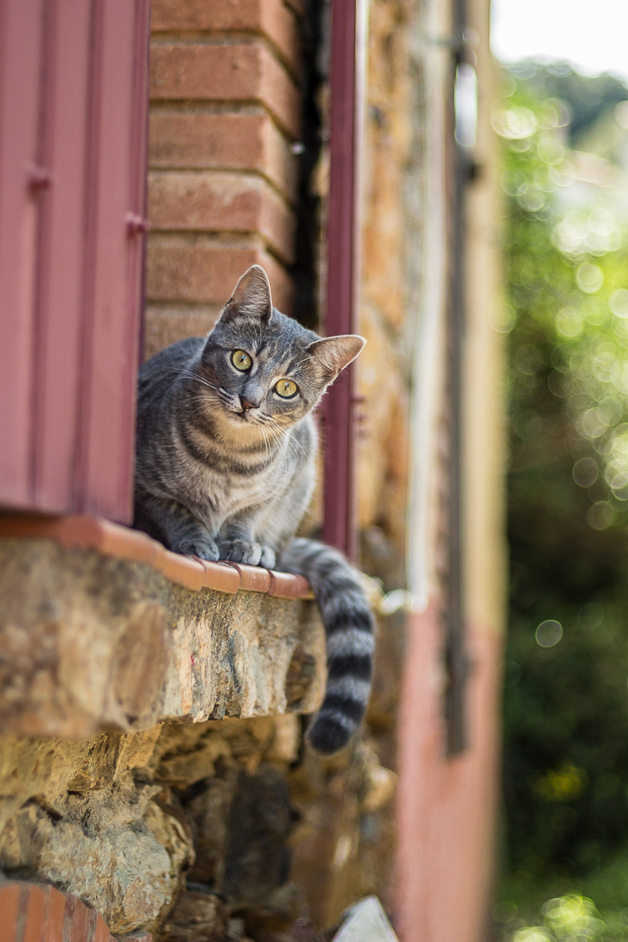 Oms n’est peut-être pas le village le plus remarquable des Aspres, mais son atmosphère paisible et son charme bucolique en font un lieu très attachant. La route qui y mène est bordée de forêts de chênes lièges qui contrastent avec la végétation plus aride du reste des Aspres. Une fois garés sur la place de la mairie, à l’ombre des arbres, nous sommes immédiatement imprégnés de la quiétude des lieux.
