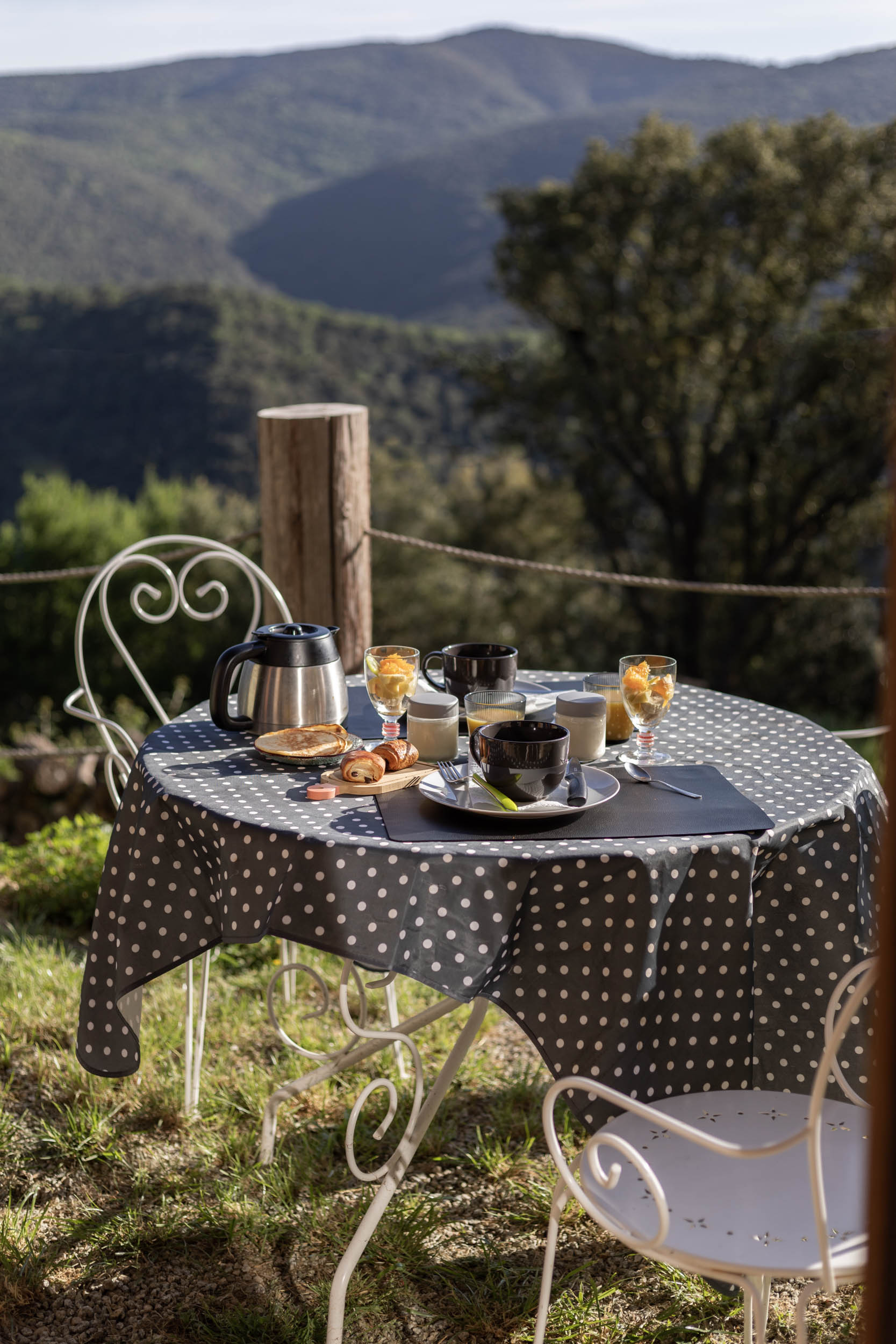 Le petit déjeuner est amené le matin par Fanny, une hôte discrète et agréable. Produits locaux et gourmands sont au rendez-vous. Le soir, vous pouvez également réserver un plateau de tapas, parfait pour profiter d’un moment convivial.