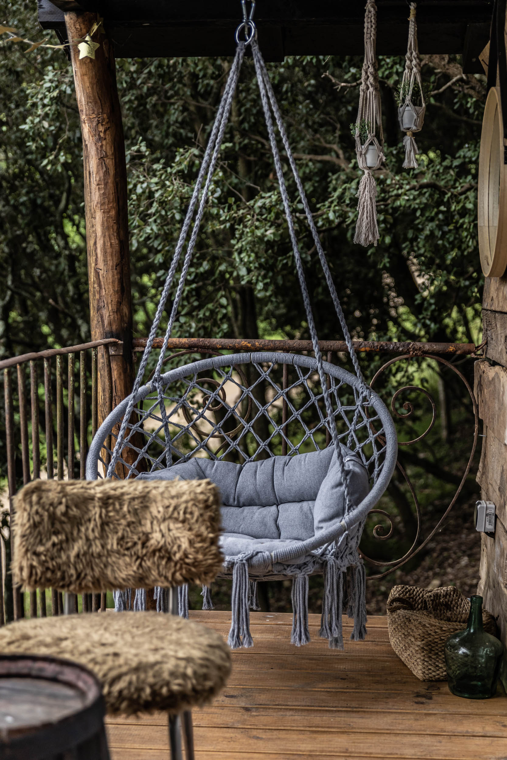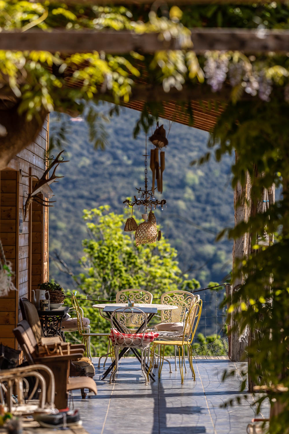 Il y a également deux autres cabanes « Séquoias », un peu plus spacieuses avec vue sur la vallée. Enfin, le « Lodge » peut accueillir jusqu’à 6 personnes et peut aussi être loué pour des séminaires et des stages de yoga car il dispose d’une immense terrasse couverte.