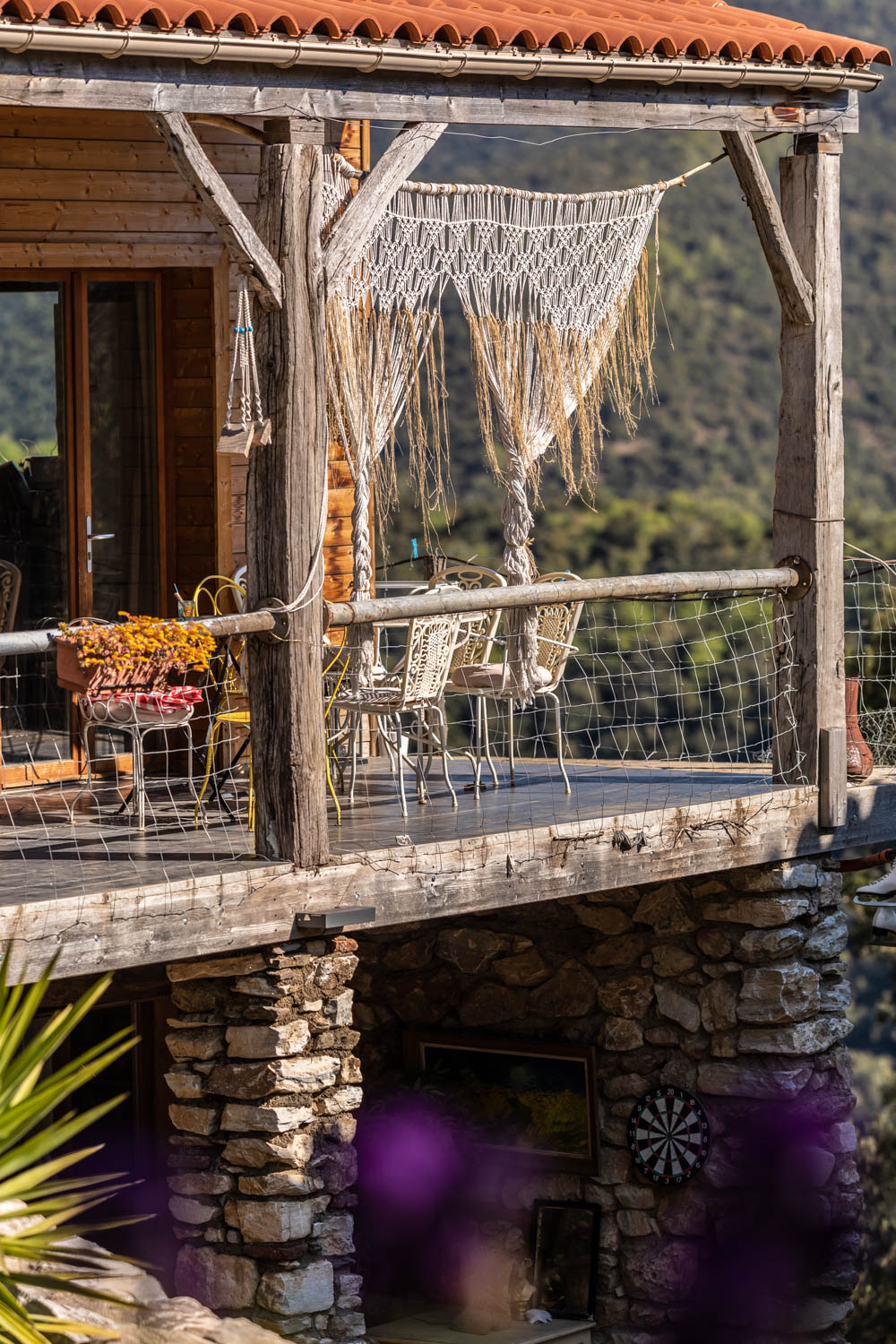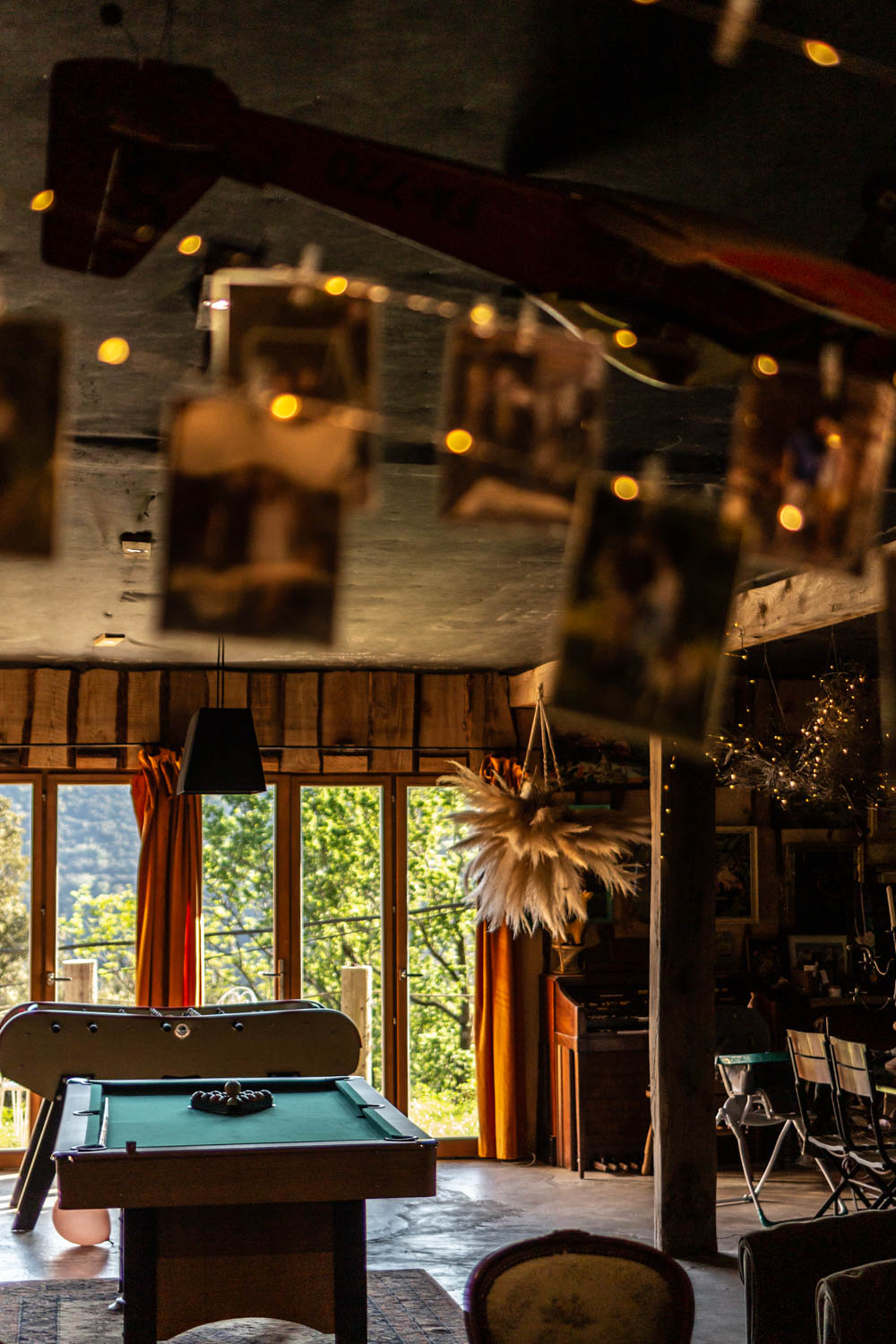 Ce qui nous a beaucoup plu au Mas Saber, c’est aussi sa grande salle commune à l’atmosphère bohème. Un lieu dans lequel on a envie de passer des heures à chiller, jouer à des jeux ou bouquiner. Cette pièce dispose également d’une cuisine et d’une partie sanitaire avec douche et WC pour les occupants de la bulle et de la cabane aux oiseaux.