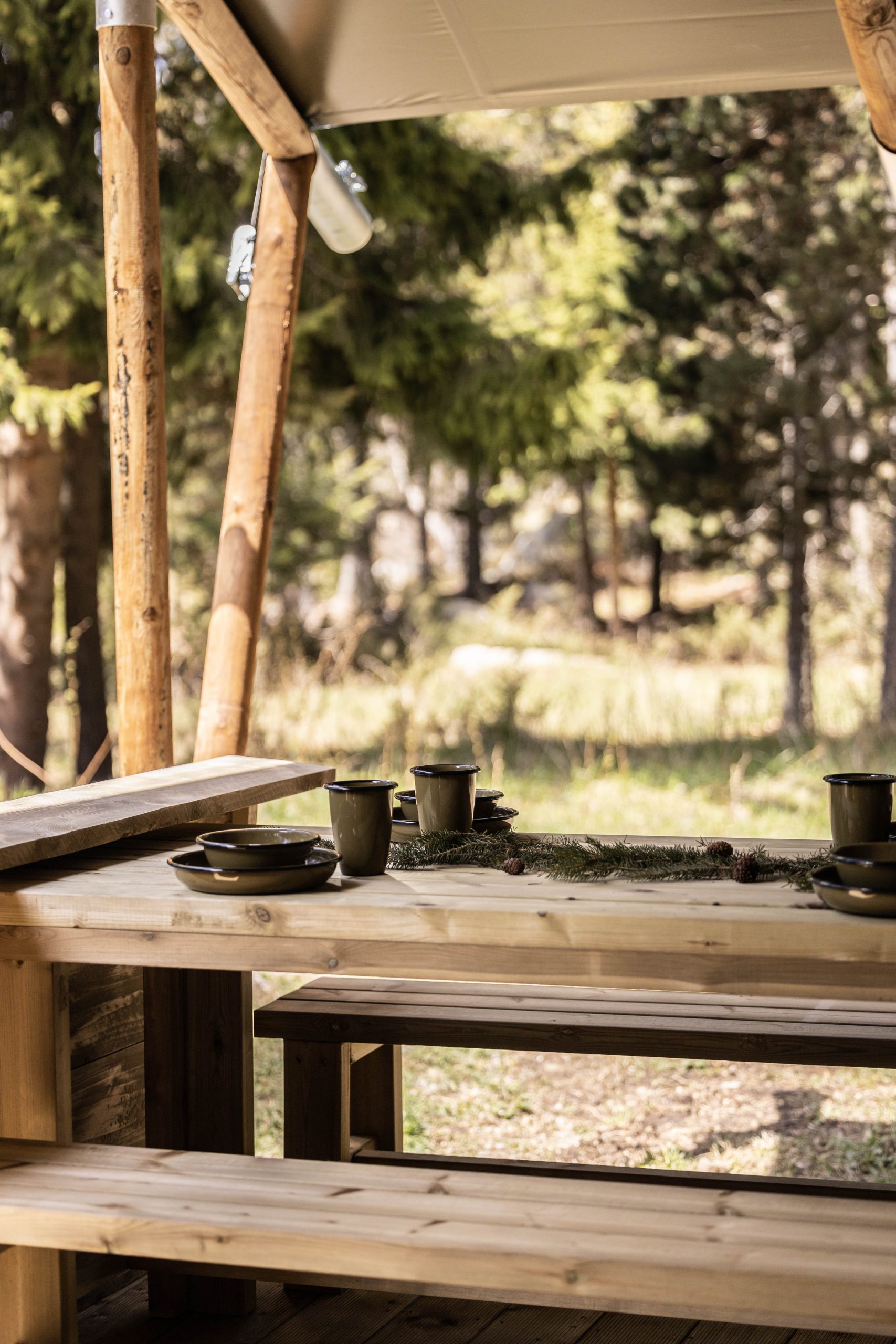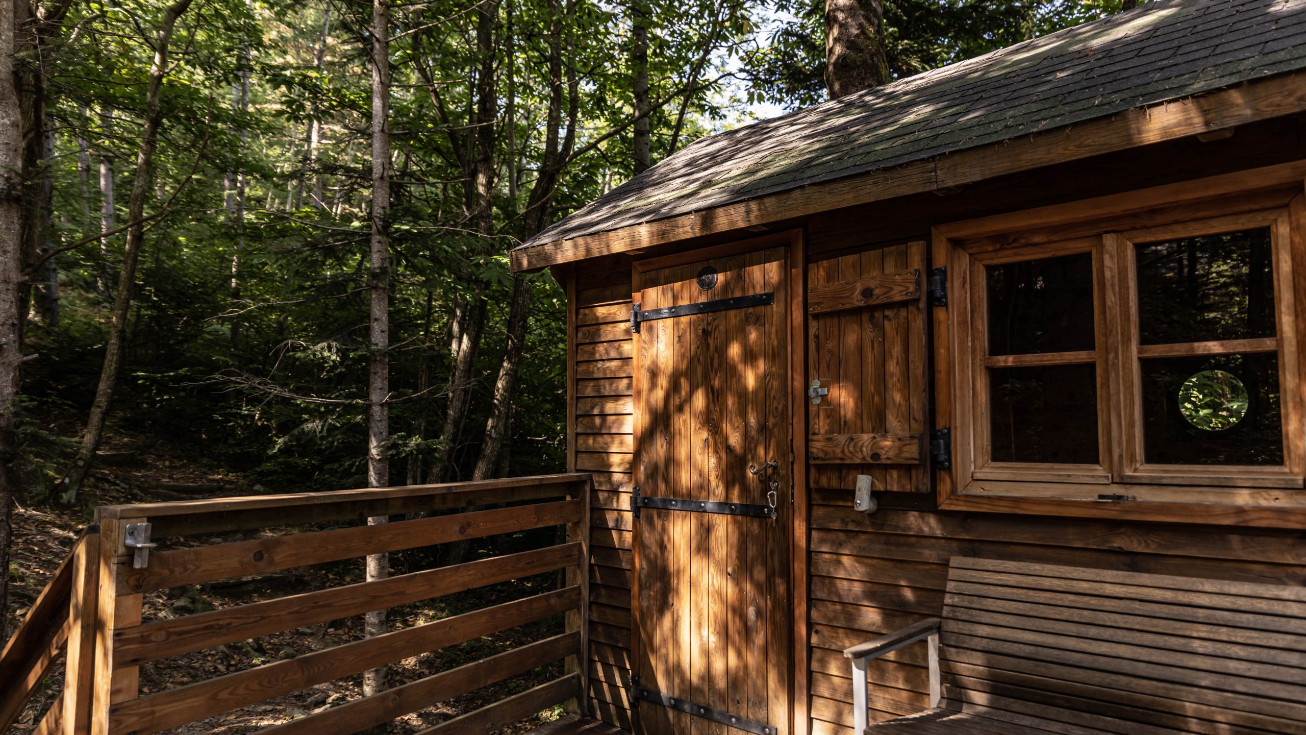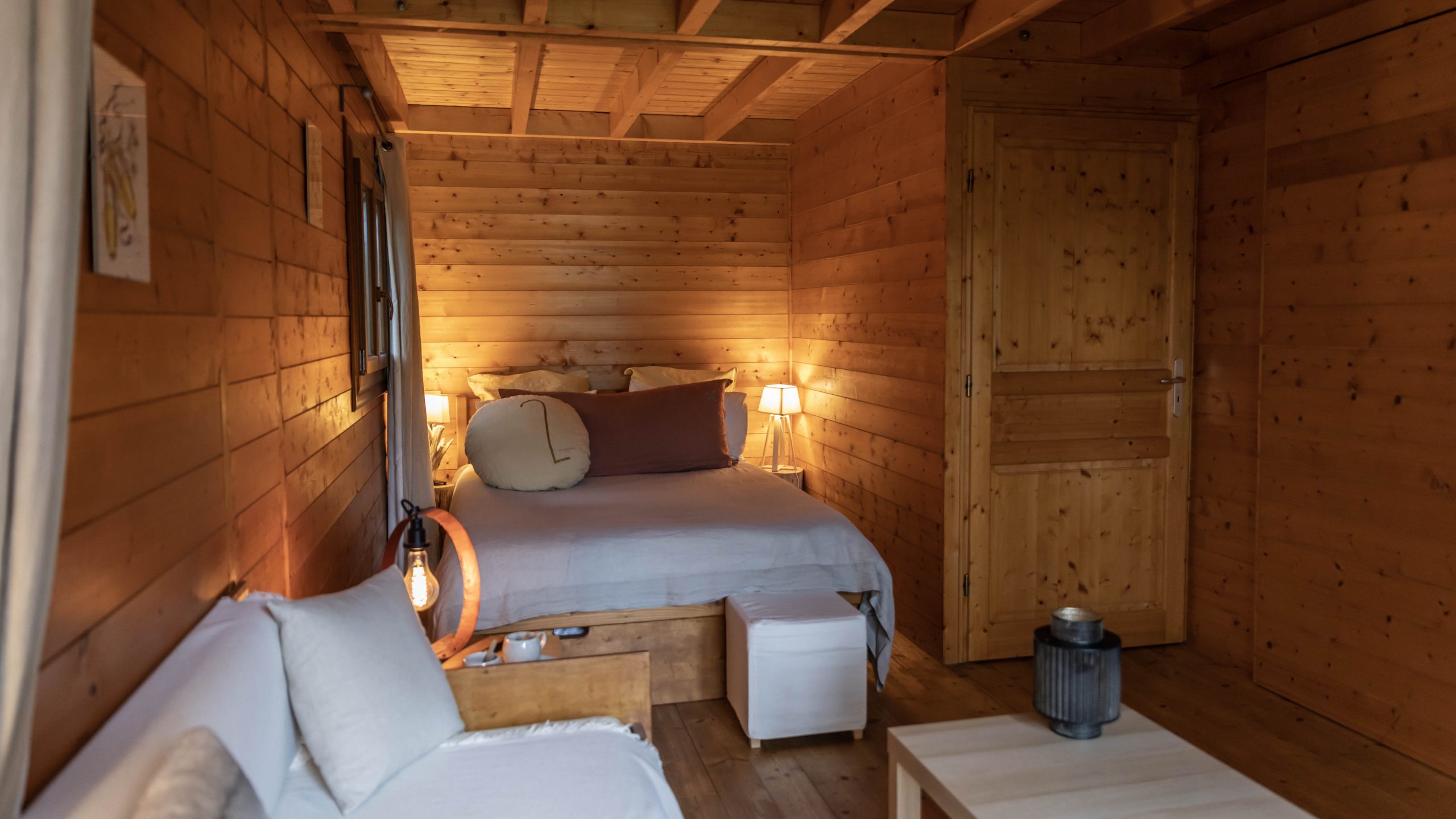 Petite précision à propos de notre hébergement : la cabane Mélèze, nichée au creux des arbres, est particulièrement cosy mais elle ne possède pas de toilettes. Les sanitaires se trouvent un peu plus loin mais le chemin est assez escarpé. Autant vous dire qu’en pleine nuit, c’est mission impossible pour moi ! Du coup, on a également passé une nuit dans l’une des Cabanes « Séquoias », qu’on a beaucoup apprécié aussi !