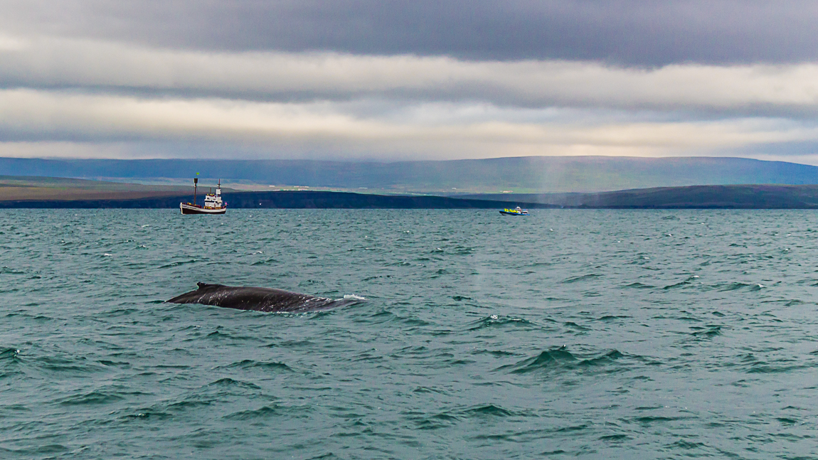 Nous sommes ensuite allés à Húsavík, où nous avons fait une excursion en bateau dans la baie de Skjálfandi, haut lieu de l’observation des baleines.